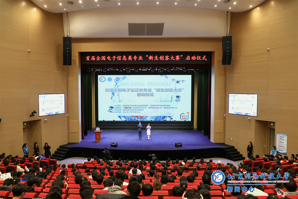 激扬新生动能,点亮创客星火。11月19日,由教育部电子信息类专业虚拟教研室与北京高校电子信息类专业群共同主办,北京信息科技大学、成都信息工程大学、南京信息工程大学联合发起并承办的首届全国电子信息类专业新生创客大赛,在我校沙河校区星光剧场正式启动。同期,我校第九届新生创客大赛决赛圆满落幕,同步开启第十届赛事。这标志着这项历经九年深耕的优秀育人实践,已成功从校级品牌活动升级为辐射全国的创新赛事平台,开启“专创思”深度融合的育人新篇章。