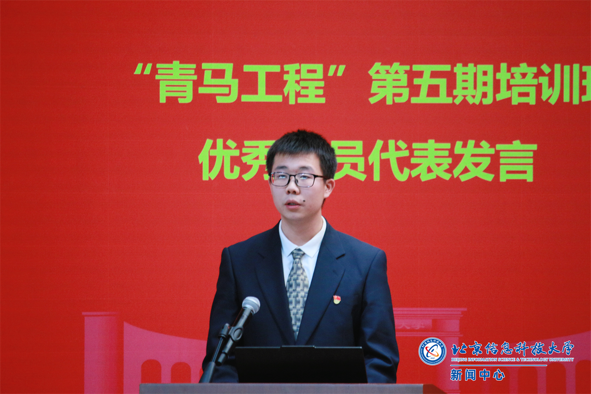 第五期培训班优秀学员代表、计算机学院李耔君同学在发言中谈到,在“青马工程”的培养中,学员们深入学习马克思主义经典著作,赴红色教育基地开展沉浸式学习,积极参与社会实践,努力成为红色基因的传承者、基层服务的践行者与时代发展的实干者。他表示,未来将继续夯实信仰根基、汲取红色力量、锤炼实干本领,坚定不移听党话、跟党走,以实际行动诠释“青马人”的使命担当。