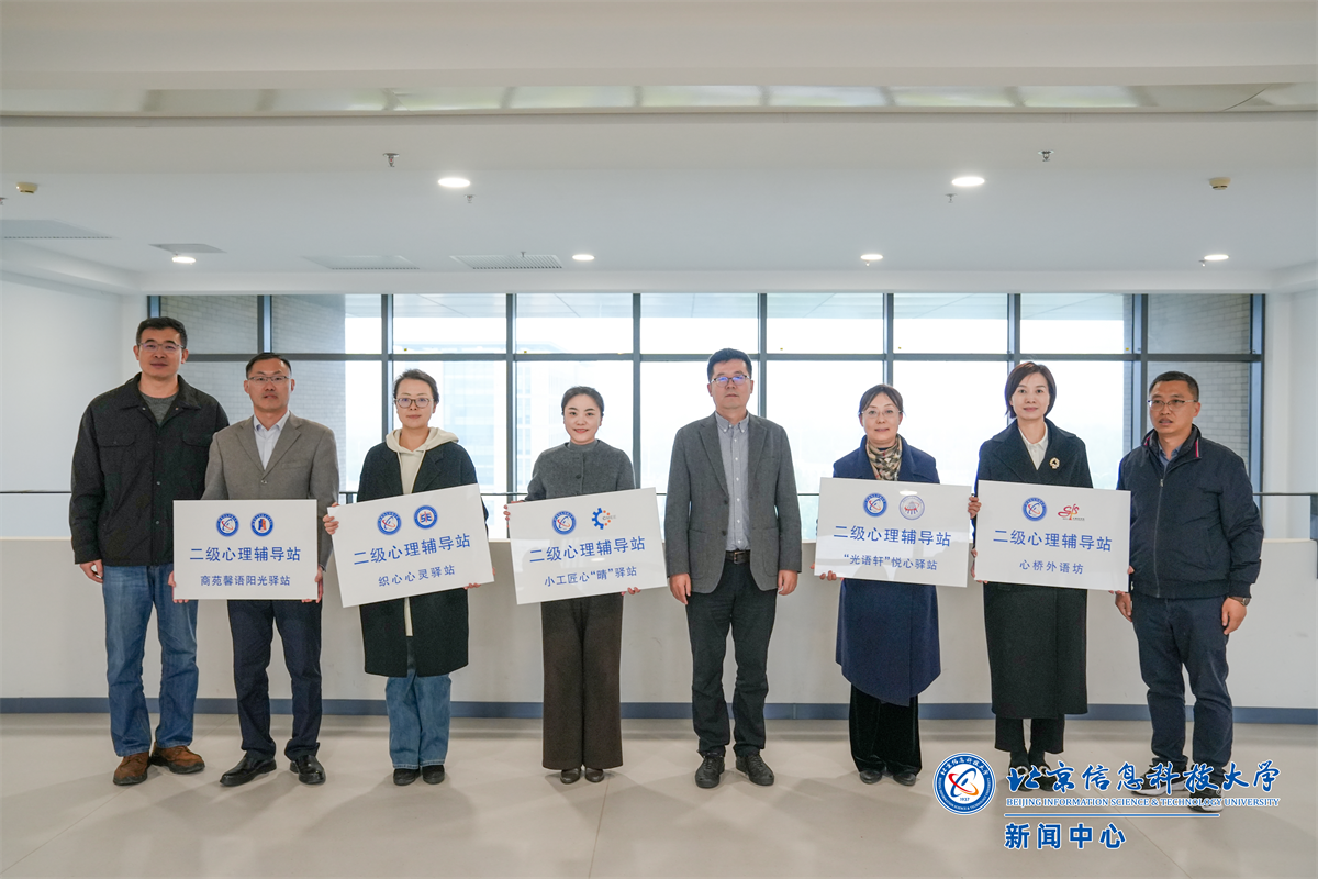 学校深入贯彻落实《关于优化提升北京高校学生心理健康工作的行动方案(2023年—2025年)》要求,自启动二级心理辅导站标准化建设以来,始终坚持“全员心理育人”理念,历经一年精心筹备,严格遵循“项目申报—学院自评—学校评审—组织验收”全流程推进,通过分批次立项、给予专项经费支持、制定明确建设规范等方式,推动各学院结合学科特色与学生特点打造专属心育阵地。每一块牌匾背后,都承载着为学子筑牢心灵港湾的责任,也凝聚着学校推进心理健康教育科学化、规范化建设的决心。